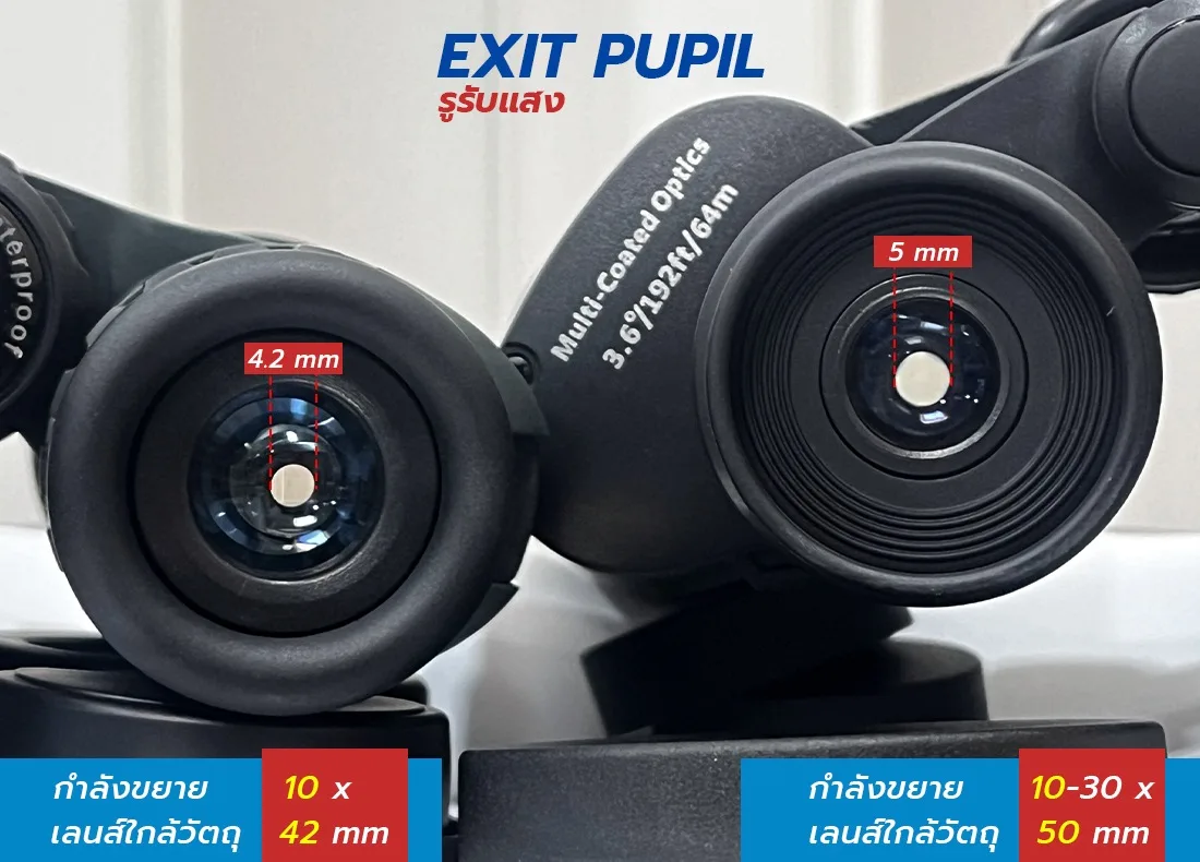 - รูรับแสง คือ เส้นผ่านศูนย์กลางของวงกลมแสงที่ออกมาจากเลนส์ใกล้ตา โดยวัดเป็นหน่วยมิลลิเมตร (mm)