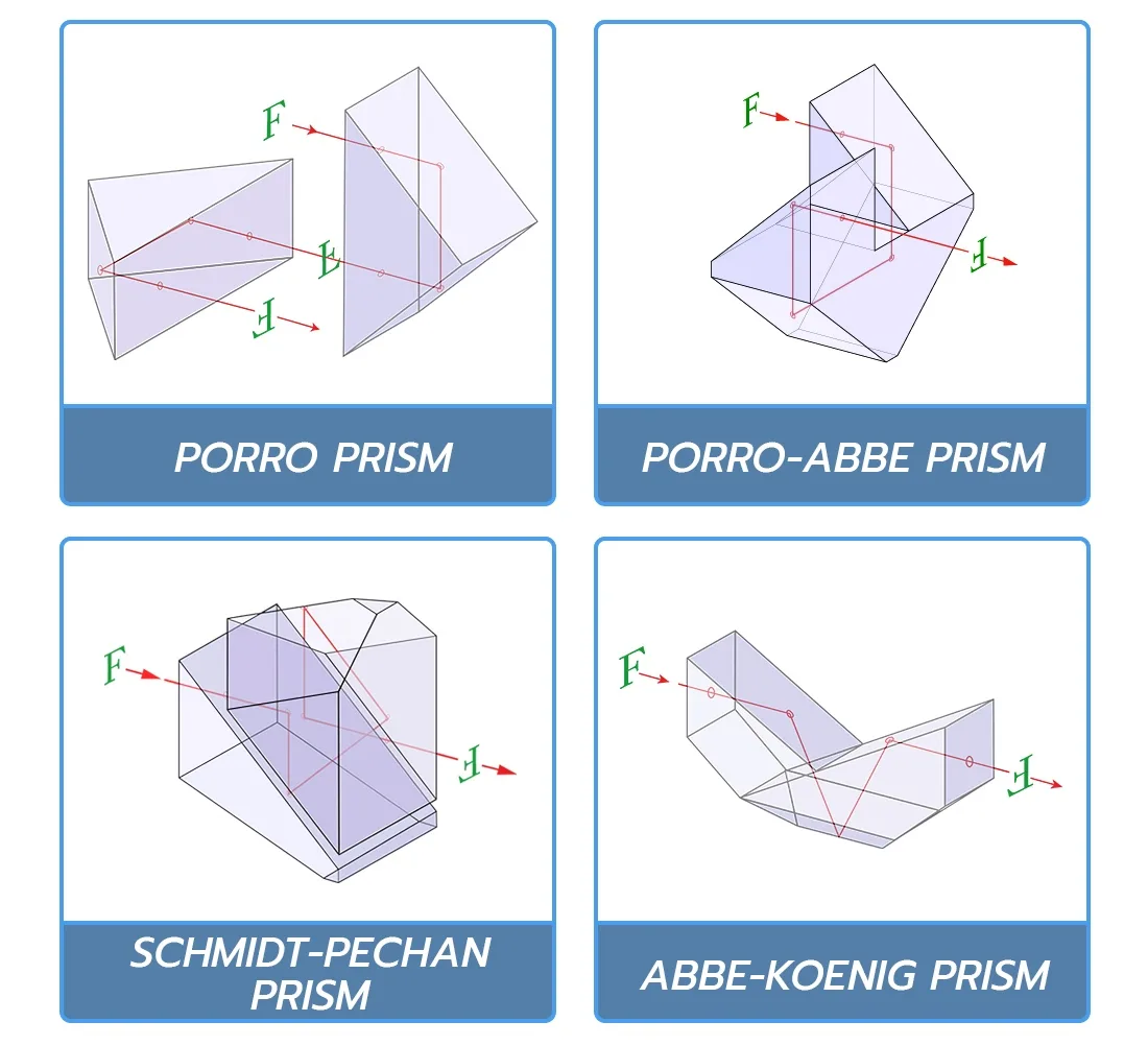 - Abbe-Koenig Prism : เป็นปริซึม 1 ชิ้น และมีการผลิตที่ซับซ้อนที่สุด
