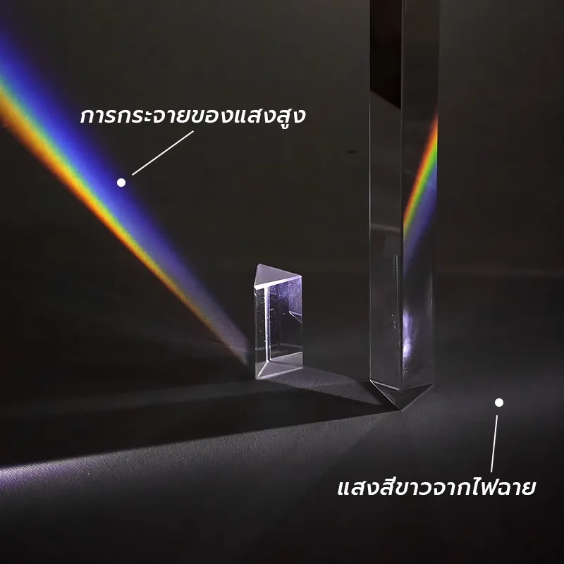 - การกระจายของแสง ขึ้นอยู่กับรูปทรงของปริซึม องค์ประกอบทางเคมี โครงสร้างระดับอะตอม และความยาวคลื่นของแสง