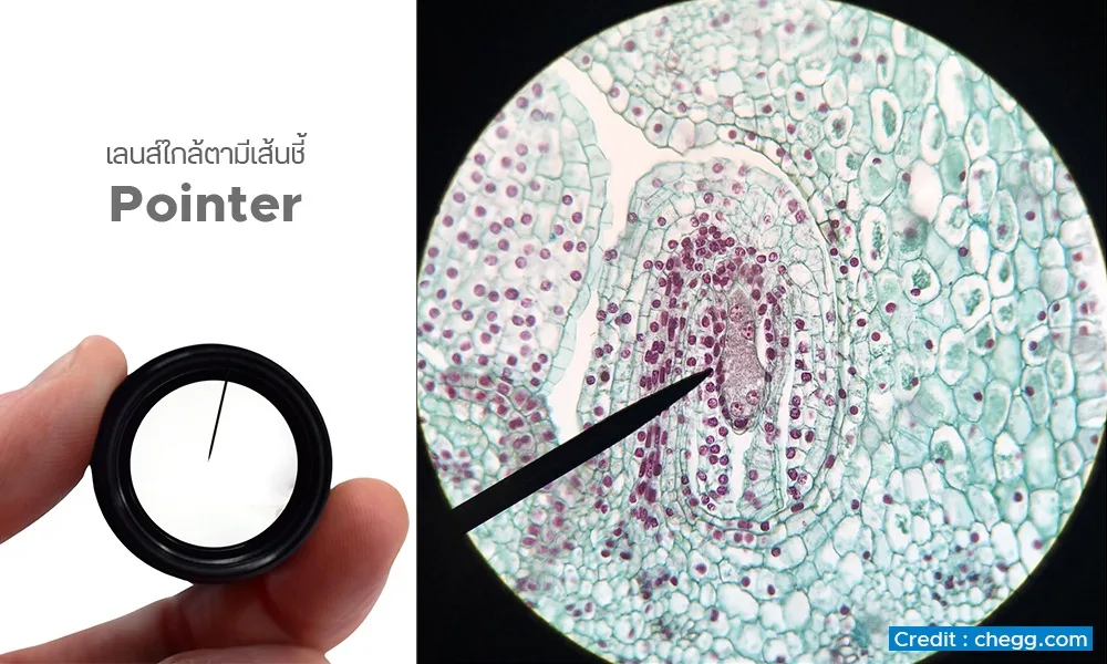 Pointer เป็นจุดหรือเส้น ที่ปรากฏอยู่ในภาพ ขณะที่เรามองเห็นผ่านเลนส์ใกล้ตา ช่วยให้ผู้สอนสามารถชี้ตำแหน่งหรือโครงสร้างที่ต้องการให้นักเรียนสังเกตเห็นได้อย่างแม่นยำ ทำให้การสื่อสารระหว่างผู้สอนและผู้เรียนมีประสิทธิภาพมากยิ่งขึ้น โดยเฉพาะการเรียนการสอนแบบกลุ่ม ซึ่งจะช่วยเพิ่มประสิทธิภาพและความสะดวกในการสังเกตการณ์และทำให้นักเรียนสามารถเรียนรู้ได้ไวยิ่งขึ้น