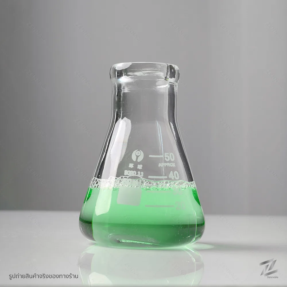 - รูปทรงกรวย มีคอแคบ ช่วยให้หมุนผสมสารละลายได้ง่าย
