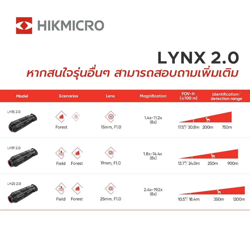จับความร้อนในระยะ 1.5 – 750 m - LH25 กำลังขยาย 2.4x – 19.2x