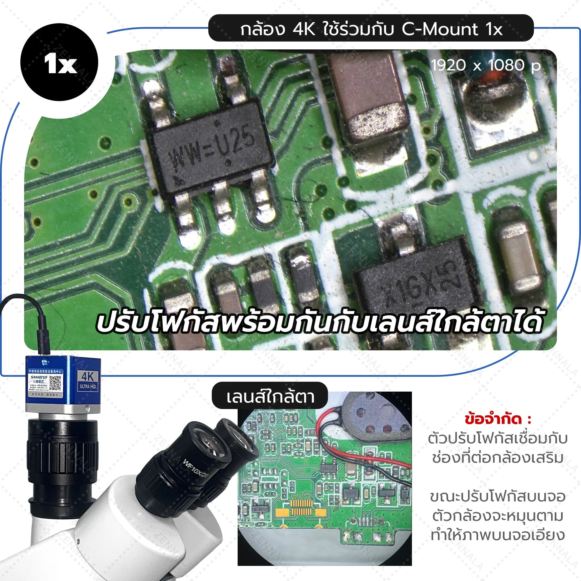 - กำลังขยาย : 0.5x + ปรับโฟกัส