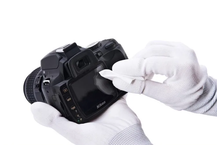 - ใช้น้ำยาทำความสะอาด หยดลงบนผ้า และนำมาเช็ดวนแบบก้นหอย ที่หน้าเลนส์กล้อง