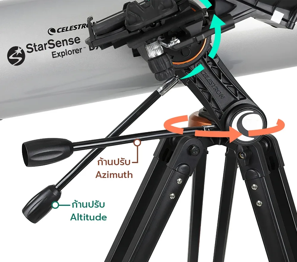 - แกน Altitude (Alt) : ใช้ปรับมุมเงย ขึ้น-ลง